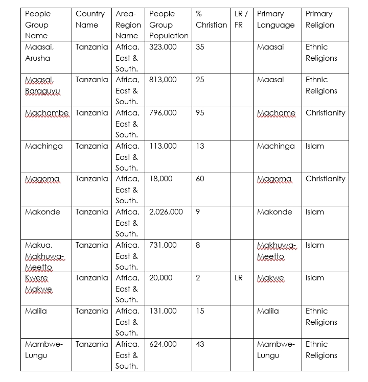 Pray for many to be prompted to faithfully pray for the salvation of the unsaved in these People Groups of Tanzania.
