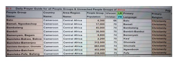 Pray that the people of Cameroon will understand the grace of God that is at work and will ensure that all the gains made through the preaching of Christ will be maintained.