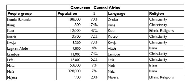 Thank God for the people of Cameron who have professed Christ as Saviour. Pray that these will remain unmovable whatever happens to them.
