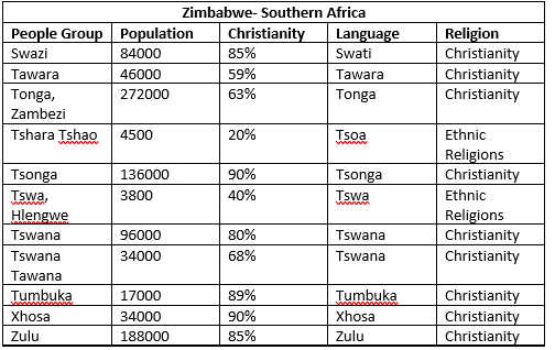 - Zimbabwe has many people who profess to be Christians. Pray that these people will rise up to reach the unreached in their areas with the gospel