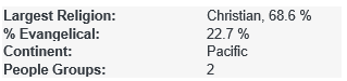 - Norfolk, Christmas, and Cocos (Keeling) Islands: The isolation of the islands and their limited resources make Christian ministry difficult. Isolation also makes their communities' very existence somewhat precarious - depending on assistance from Australia, potential disaster from violent weather and a great distance from immediate help. Pray for God to move among the existing churches to foster renewal and awakening, and for believers to reach out effectively to others, particularly to the Malays of Cocos Island and the Chinese of Christmas Island.
