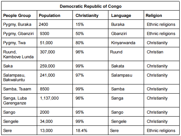 - Pray for all the missionaries working in these people groups of Congo to have a special grace and anointing for signs and wonders that will convict many and lead them to Christ