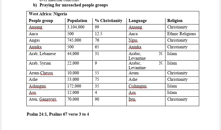 • Thank God for the Christian communities in Nigeria, Pray that the Lord will use them to witness to the neighbouring communities and raise them as a testament of his goodness in these last days.