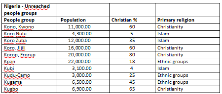 - God uses miracles to reach out and Minister to is people. Pray for a miracle in these villages of Nigeria such as Kubi people group wit only 4% of Christians and the Koro Nulu with only 5%. Pray that the Spirit of God will entice a fresh fire and perform wonders to minister to these groups.