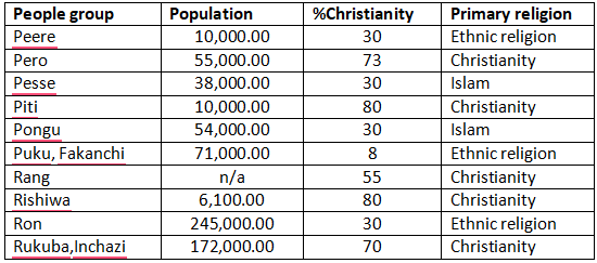 - Pray for an obedience of the word of God to go out and make disciples. Pray for the Pero, Piti, Rishiwa and Rukuba Inchazi people to develop a hunger and obedience to win souls for Christ.
