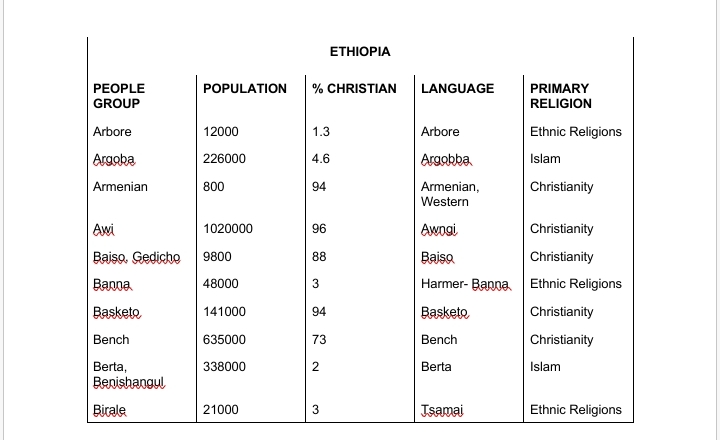 3. Amidst the economic crises, pray that resources will be made available for the gospel to be preached to all in these people groups in Ethiopia