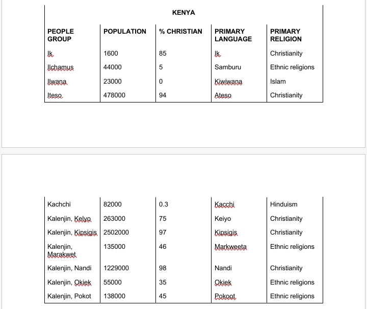 1. Despite the fact that many places in Kenya have already been reached by the gospel, there are still many Unreached people who need to hear about Jesus. Pray that the gospel will reach these groups speedily