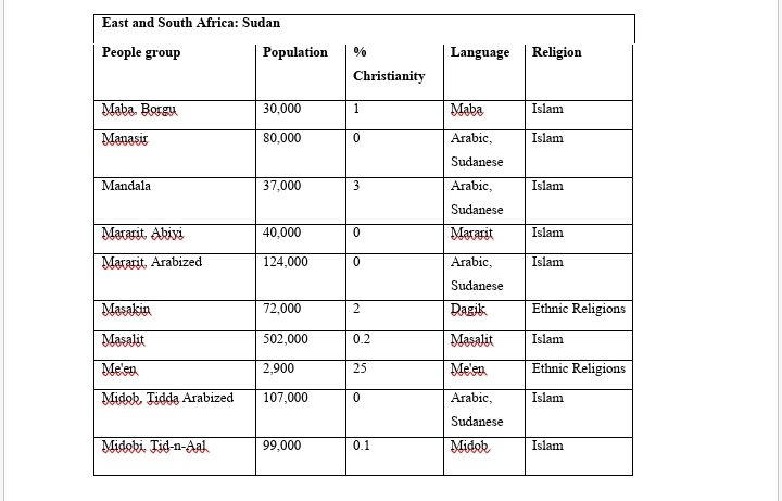 • Pray that the Lord will raise more laborers of the gospel within Sudan to reach out these people groups. Pray for signs and wonders to accompany them that the people might believe.